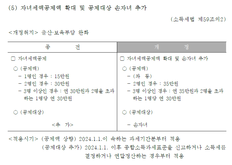 - 자녀세액공제 및 의료비 공제 혜택 상향