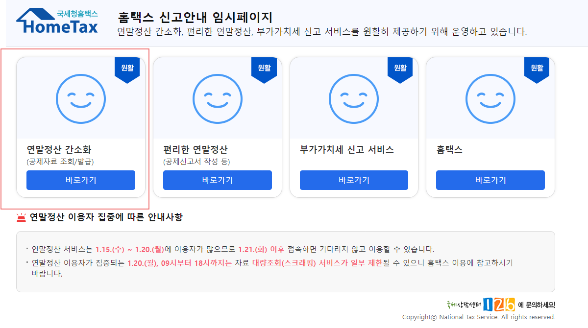 - 1월 15일 : 연말정산 간소화서비스 오픈 (06:00 ~ 24:00)