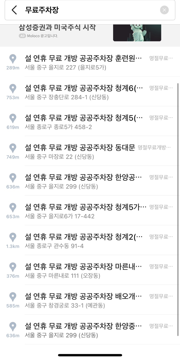 설 연휴 무료 주차장