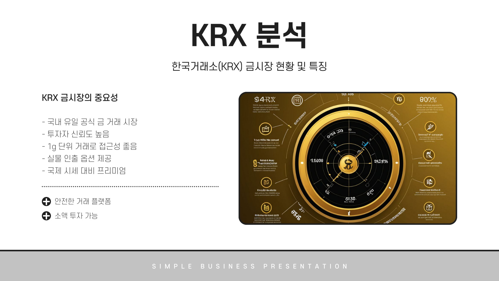 KRX 금시장은 국내에서 유일하게 금을 안전하게 거래할 수 있는 시장으로, 투자자들의 관심이 꾸준히 증가하고 있습니다.