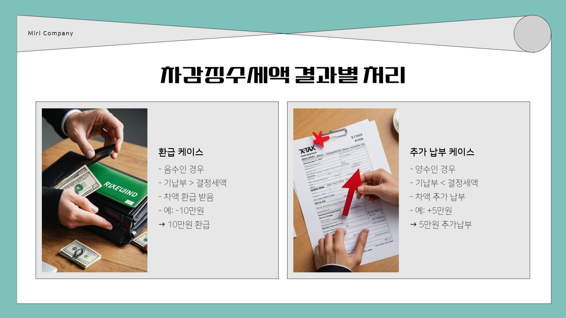 • 기납부세액과 결정세액이 정확히 일치하는 경우 추가 정산 없이 마무리됩니다.