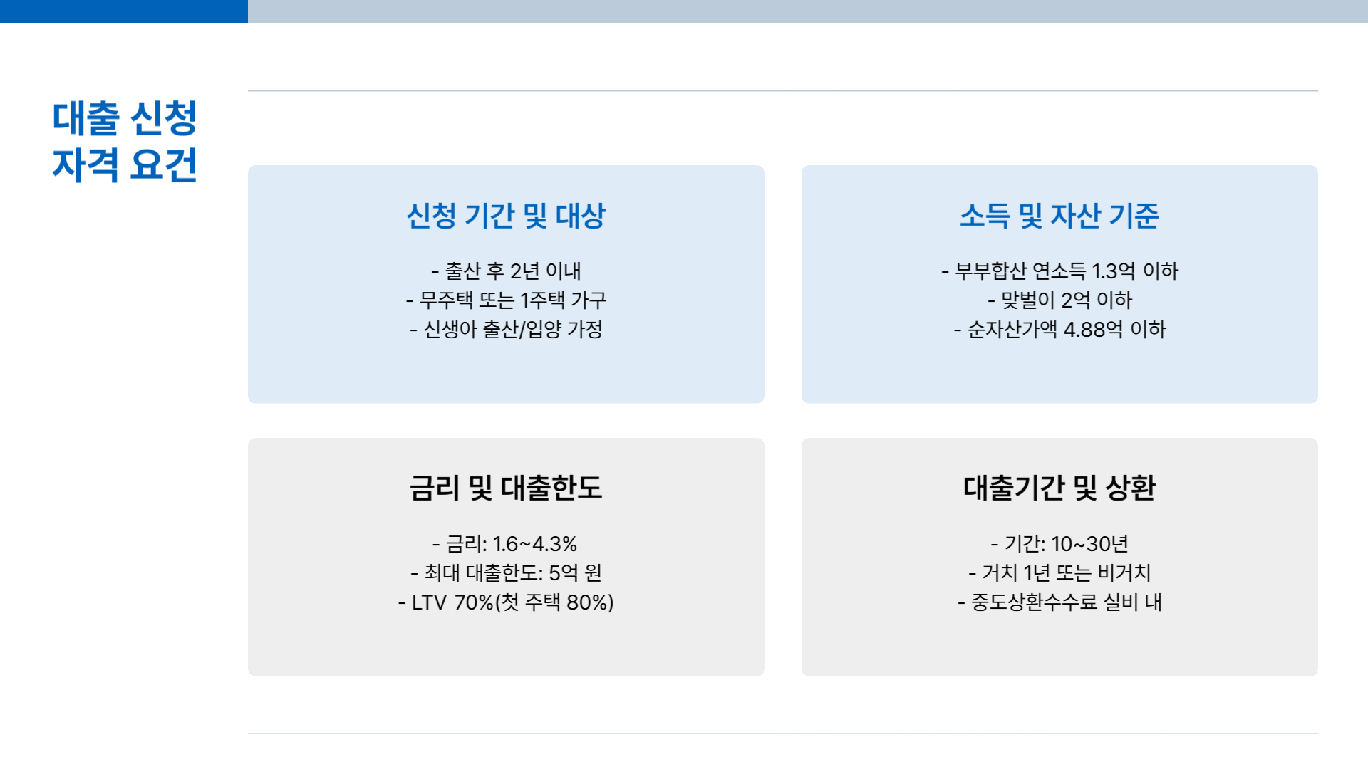 • 대출 한도 확대: 기존 육아 관련 대출보다 한도 증가