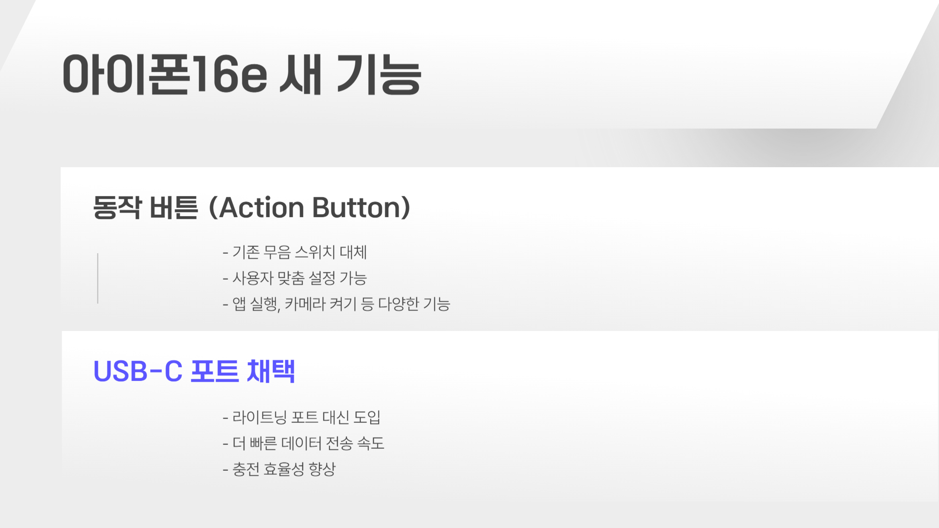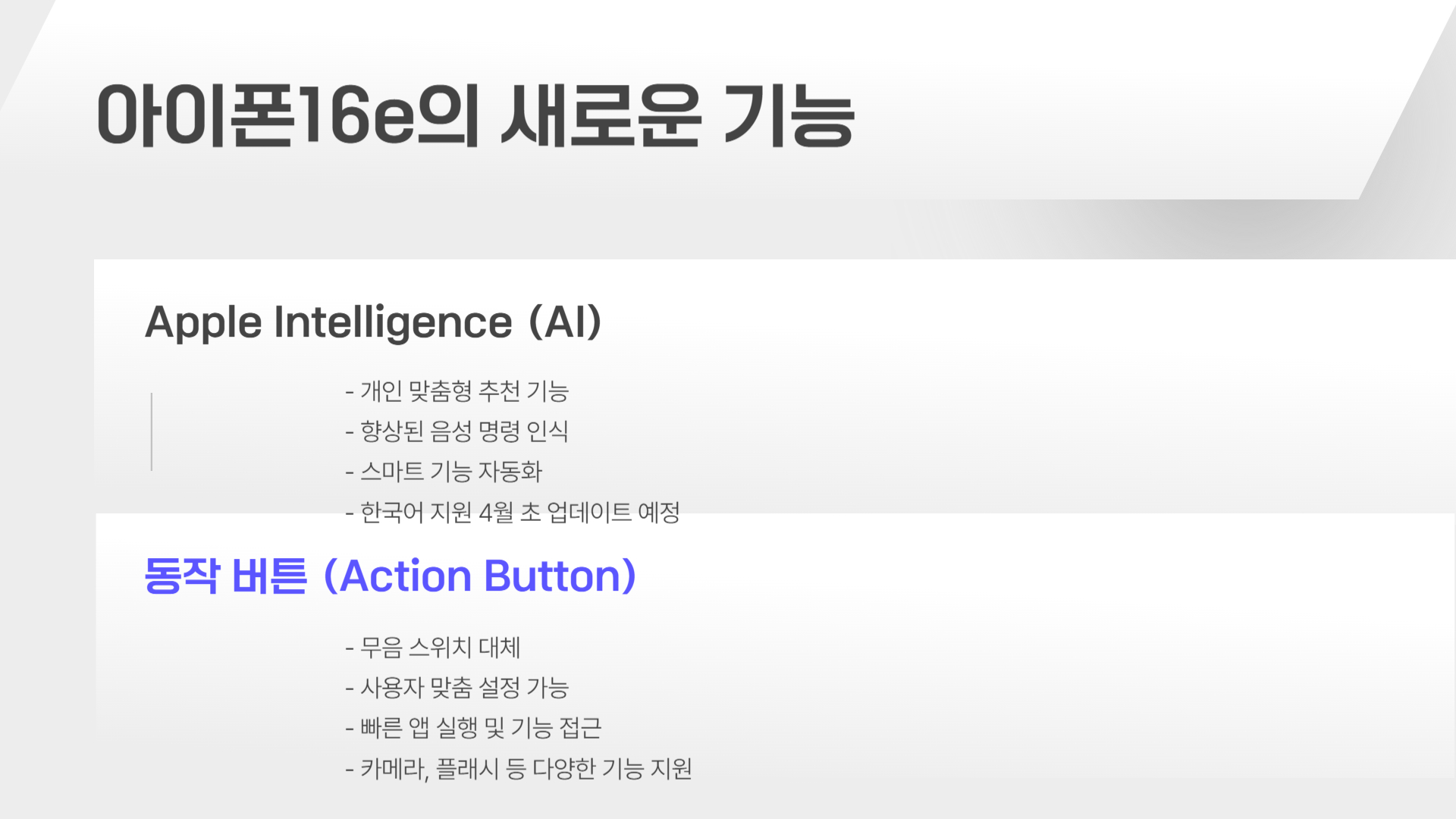 아이폰16e 사전예약이 주목받는 이유는 무엇보다도 새롭게 추가된 기능 때문입니다. 아래 기능들은 사용자 경험을 한 단계 끌어올려 줄 것입니다.