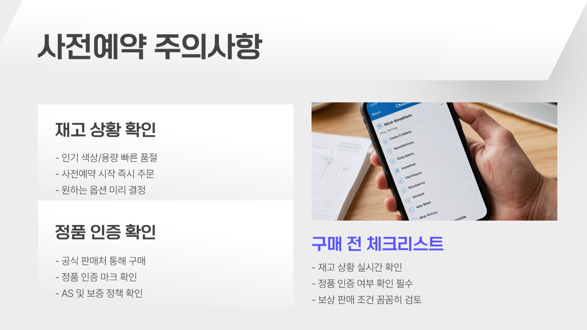 특히 인기 있는 색상이나 용량의 경우 빠르게 품절될 수 있으니 사전예약이 시작되자마자 빠르게 주문하는 것이 좋습니다.
