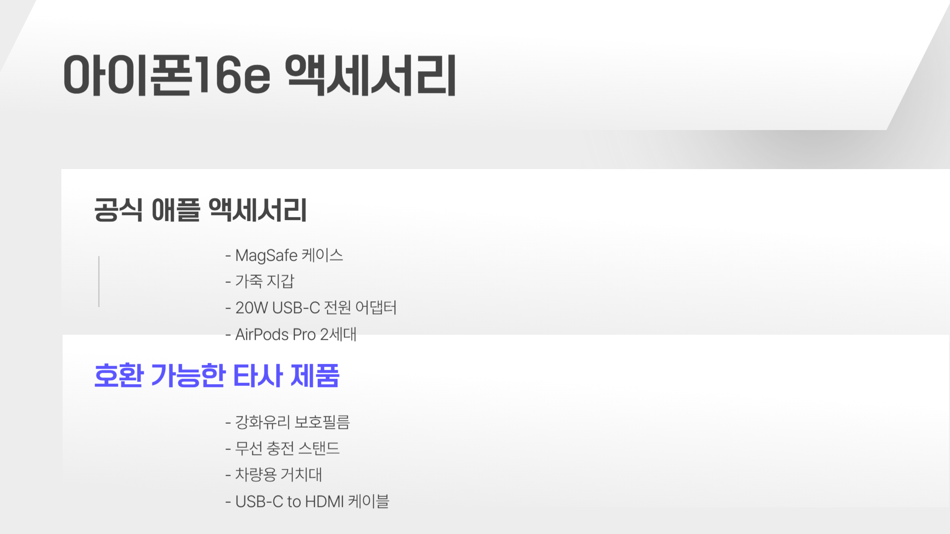 일부 온라인 쇼핑몰에서는 아이폰16e 사전예약 고객에게 무이자 할부 혜택과 함께 정품 액세서리 할인 혜택을 제공합니다. 특히 자주 사용하는 무선 이어폰이나 케이스 등을 저렴하게 구매할 수 있는 기회입니다.
