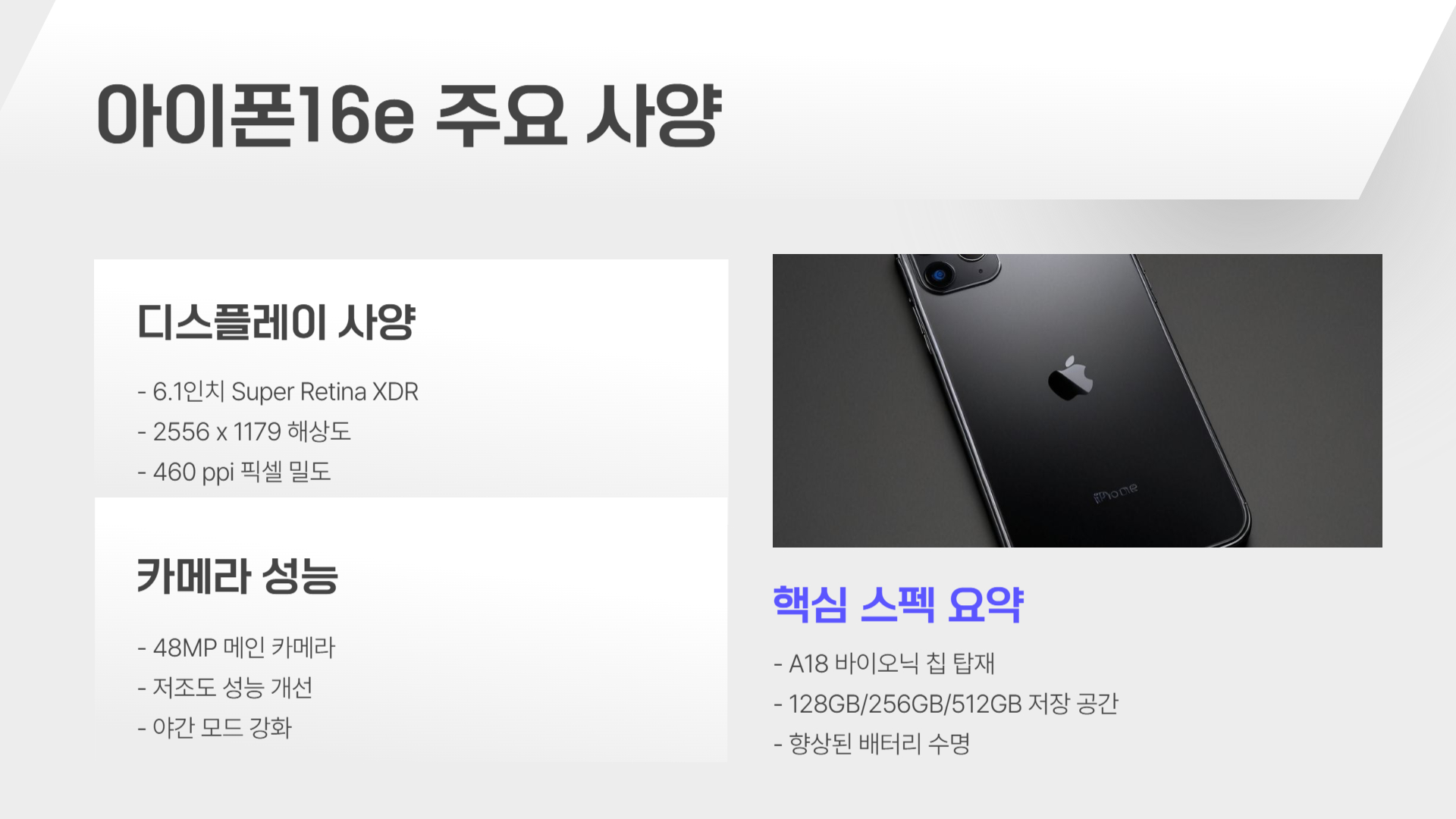 애플이 새롭게 선보인 아이폰16e가 드디어 사전예약을 시작했습니다. 매년 새로운 모델이 출시될 때마다 많은 관심을 받는 아이폰 시리즈 중에서도 이번 아이폰16e는 가격, 성능, 그리고 실용성 측면에서 특히 주목받고 있습니다. 이번 글에서는 아이폰16e 사전예약 혜택, 기존 모델과의 비교, 새로워진 기능 등을 중심으로 이 스마트폰의 모든 것을 자세히 소개하겠습니다.